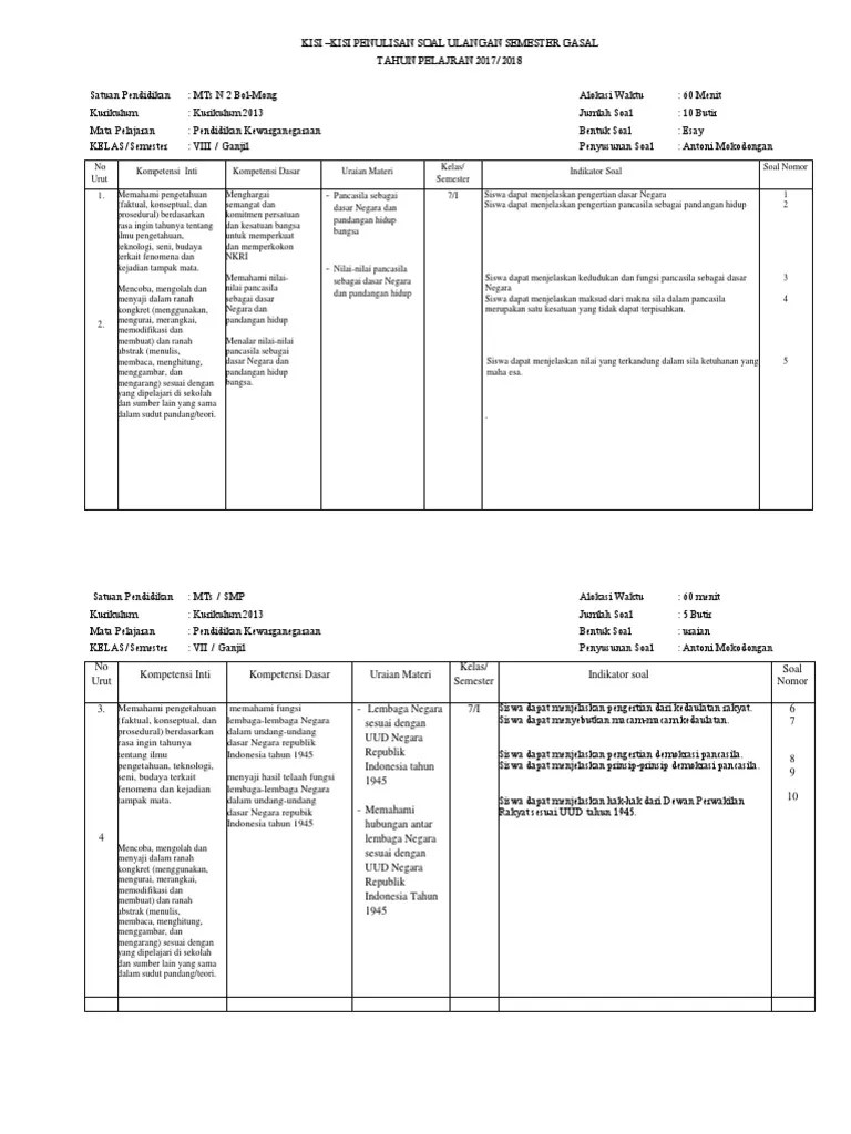 Unduh kisi kisi soal matematika kelas 4 semester 1 pts uts k13 setelah dari tadi. No kompetensi dasar indikator nomor. 2 kelas 2 semester gasal tahun 2021 mapel pkn & bahasa indonesia. Kisi kisi soal uts pts dan . Soal uts ppkn k13 kelas 2 semester 1.